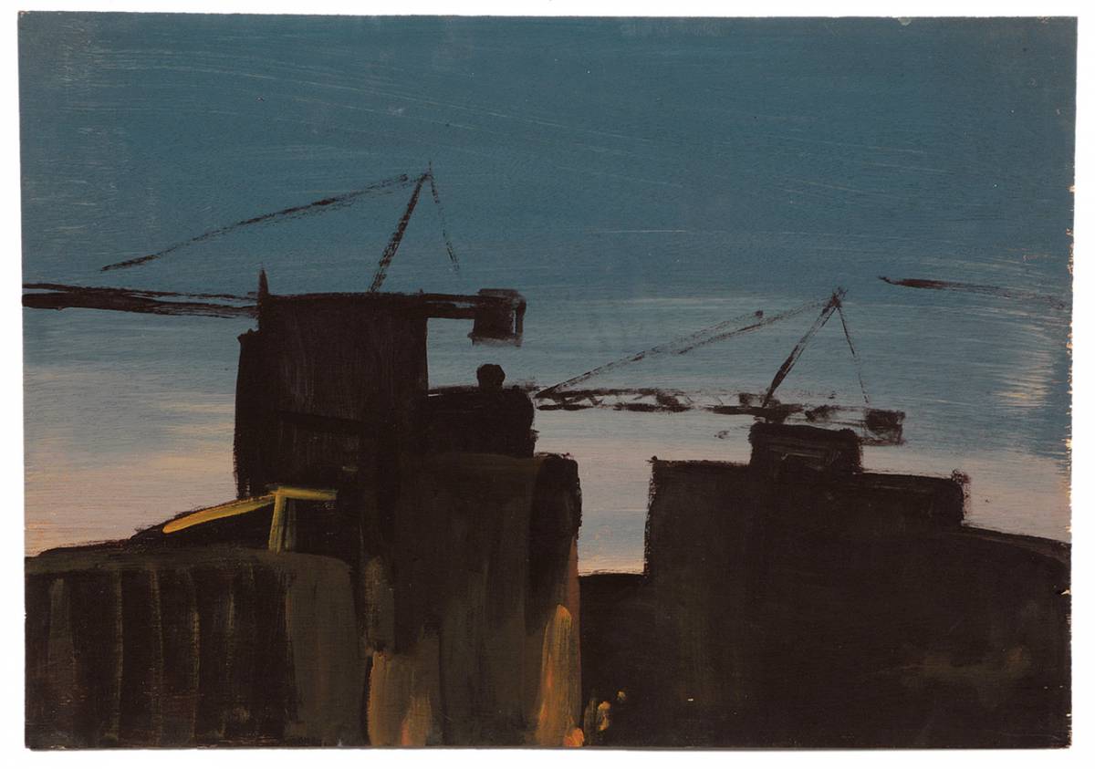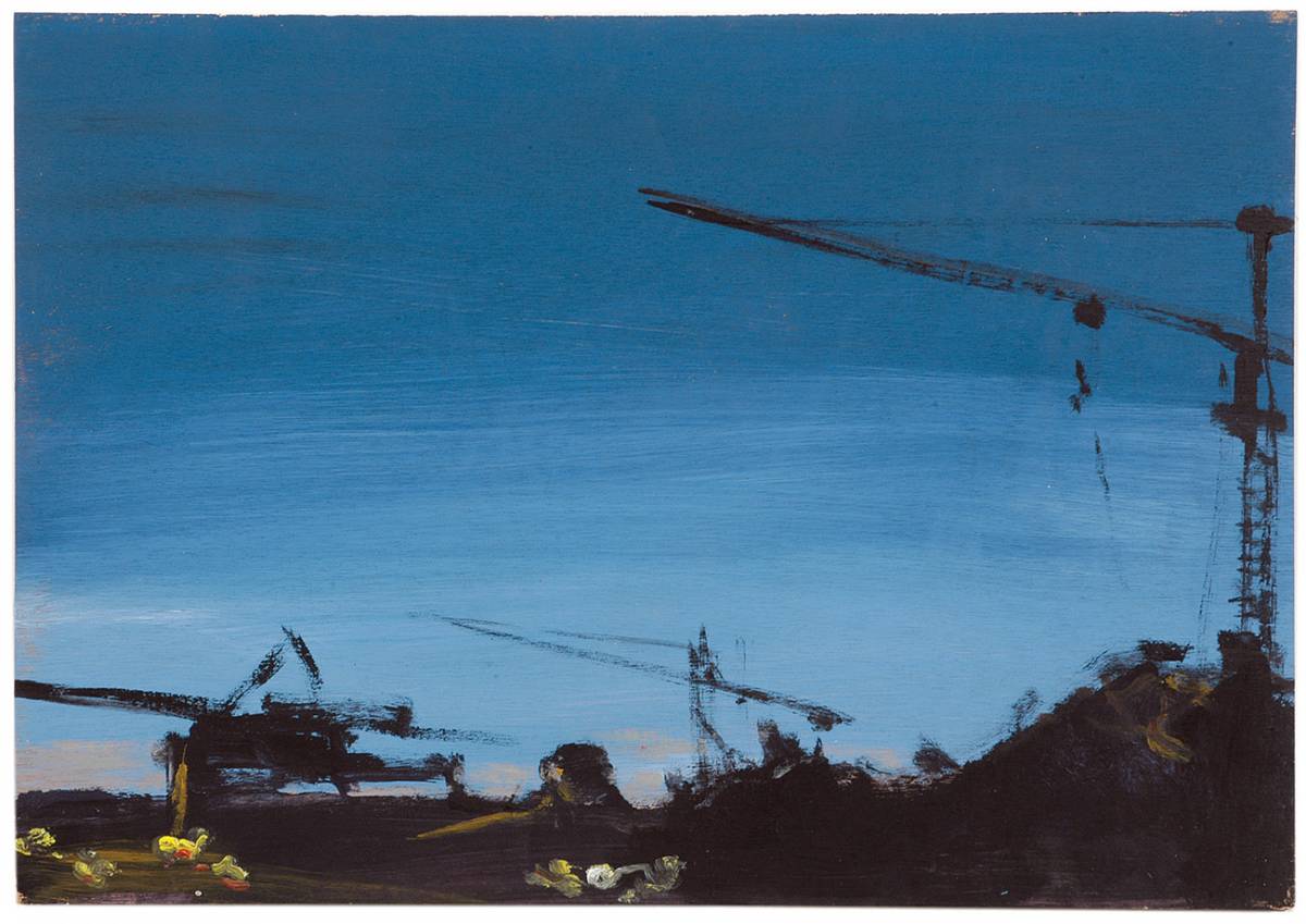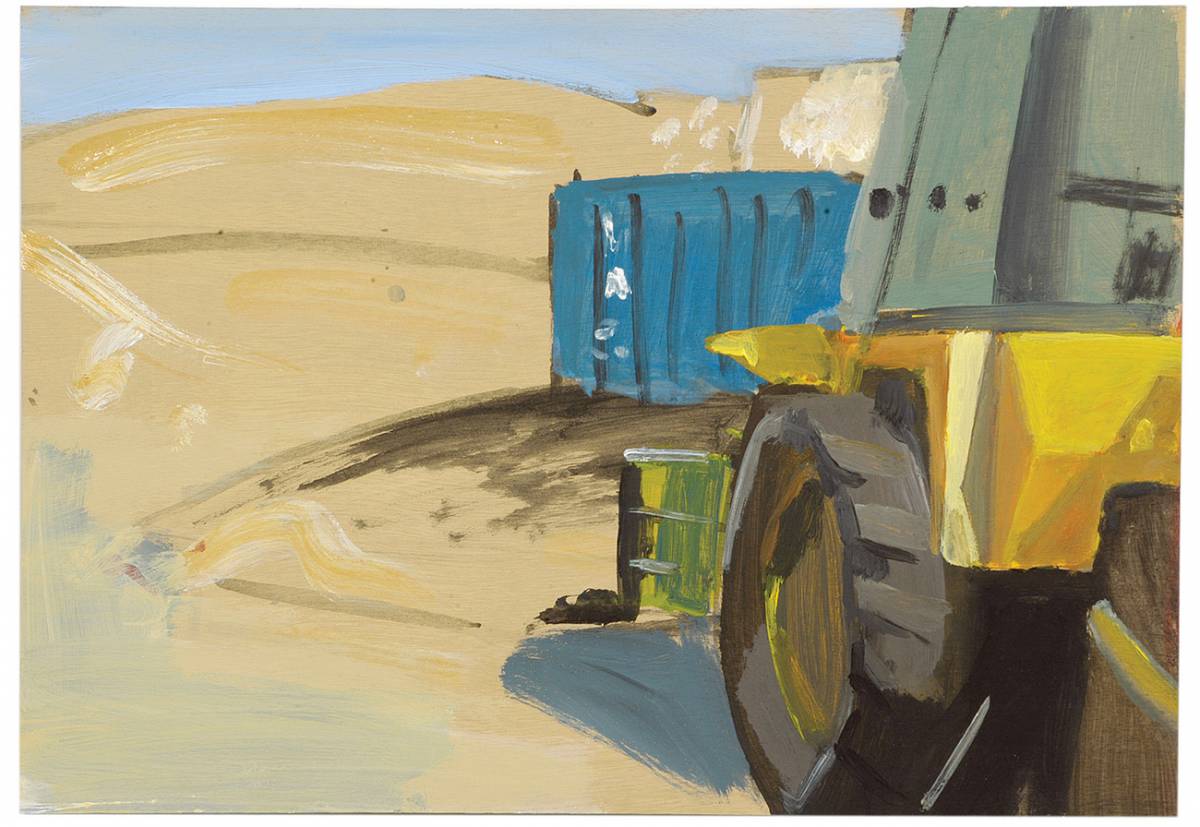 Oded Zaidel’s works are a pleasant surprise in the local art scene. Graphic designer by training, Zaidel began painting only recently. His first solo exhibition, Ladscapainting is currently showing in Agripas 12. The exhibition consists of three series of paintings and one series of drawings in industrial paint. All works are based on photographs taken on locations normally favored by directors and photographers, such as construction sites, factories, abandoned gas stations and so on. This is not photorealistic painting or painting studying painting/photography relations; the photographs are not the essence here but are merely an aid for Zaidel.
