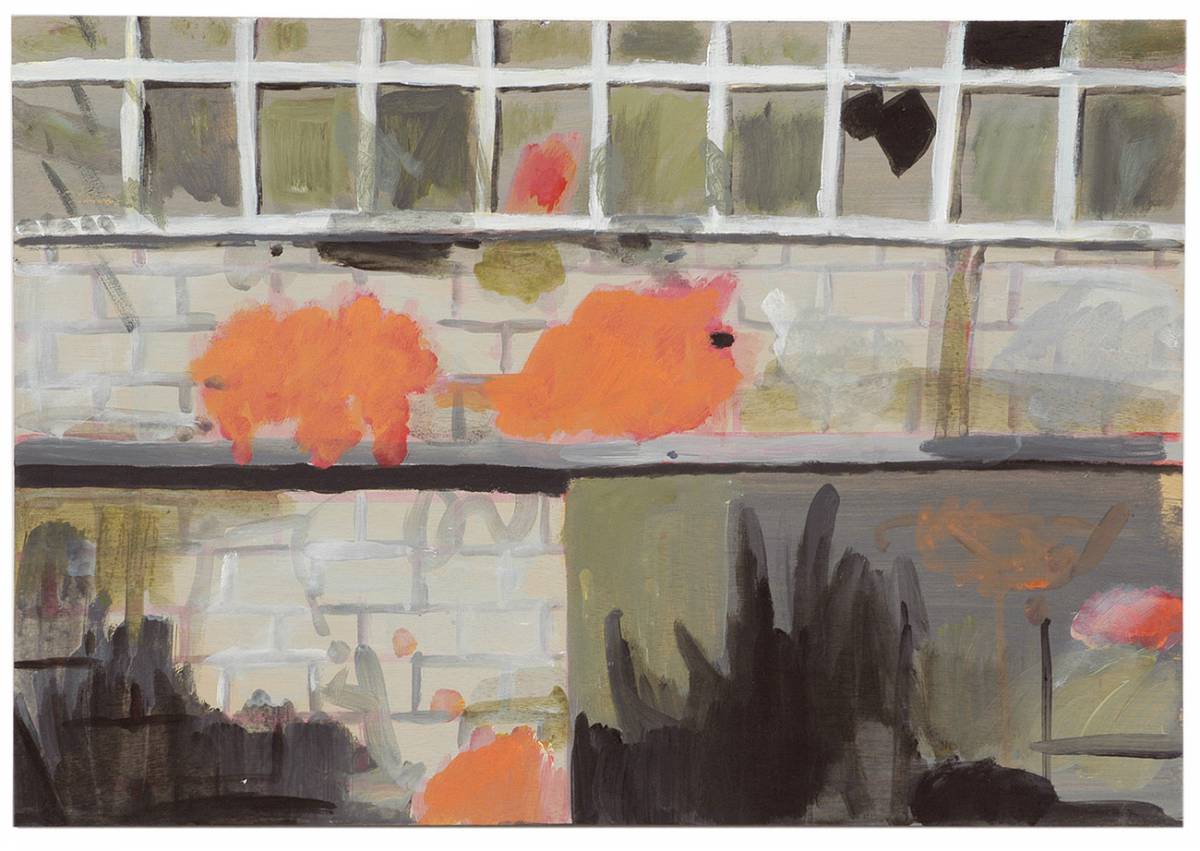It seems that the exhibition finds Zaidel on a crossroads, allowing him to expose his deliberations to the viewer. There are apparent differences between the series, although they all depict rather similar landscapes. In the first series, Zaidel isolates some items in the landscape, creating long clean compositions characterized by flat homogenous color planes. The second series is much more loaded: if the first one “cleaned” the construction sites of hue plays and elements unnecessary for painting, the second seems to compensate for it by an abundance of light and color plays in dense compositions.