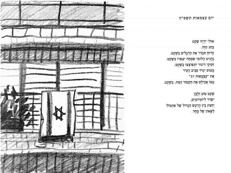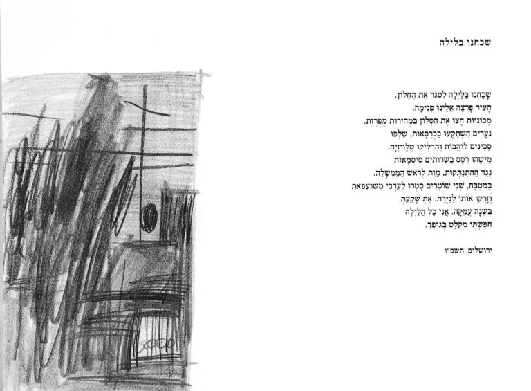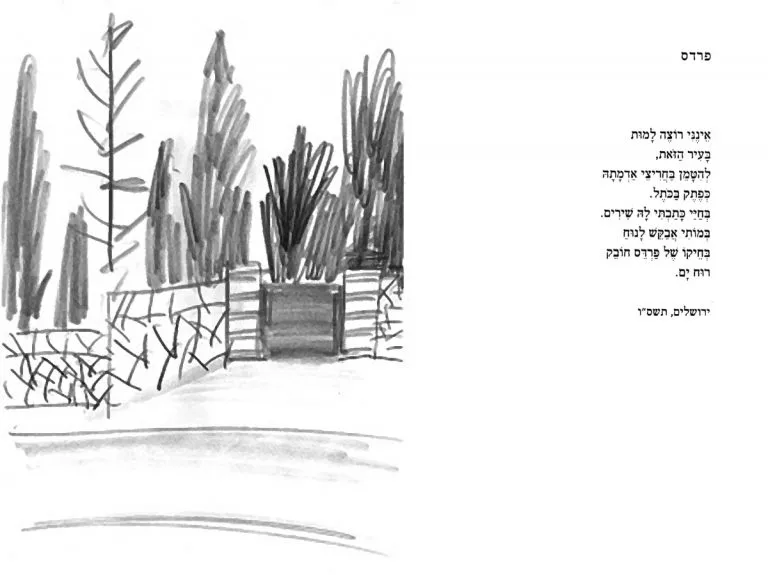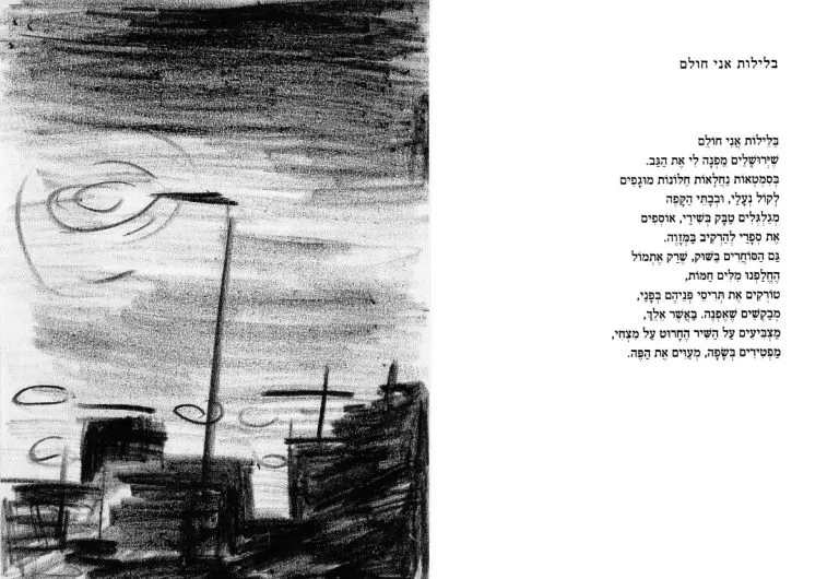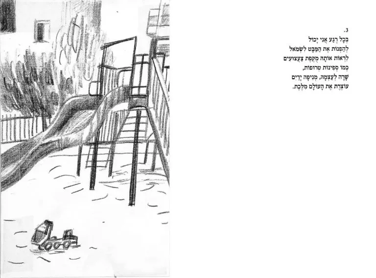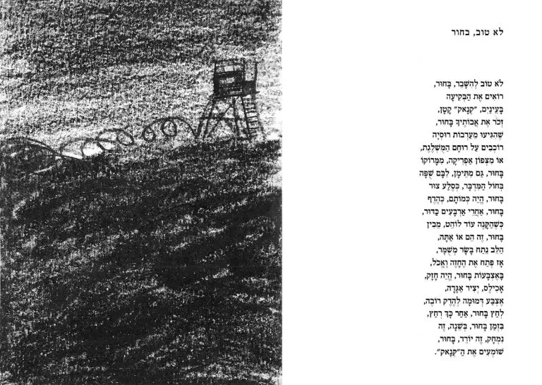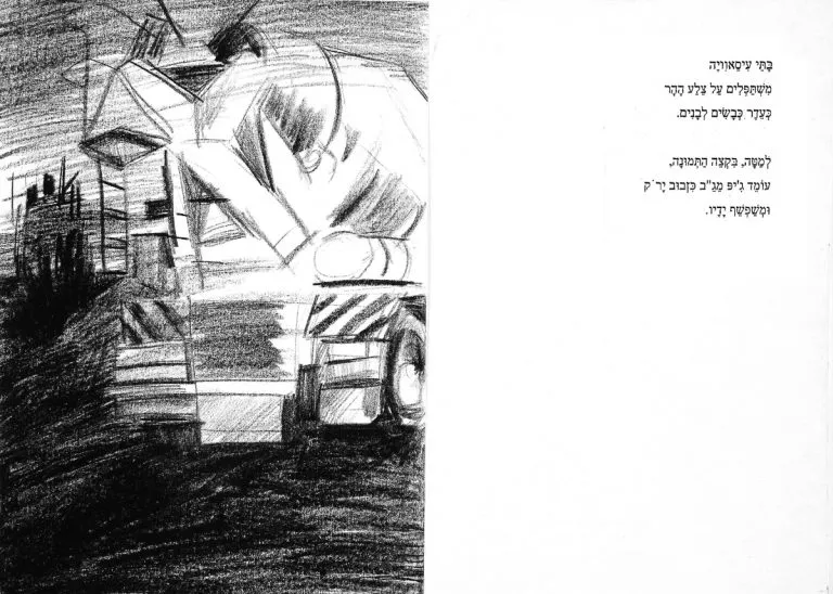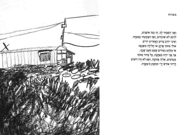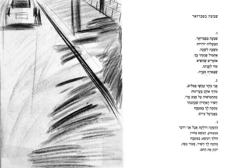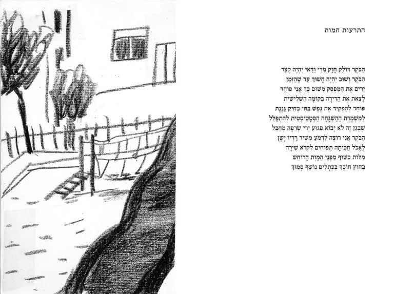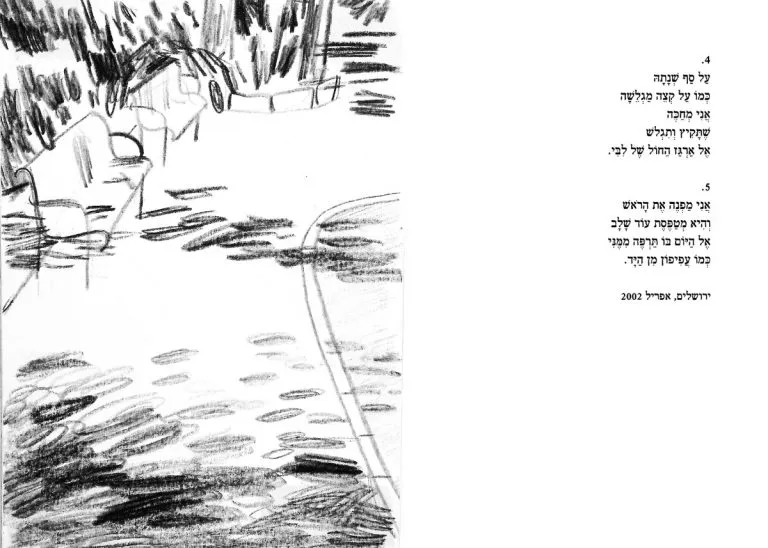 Double spreads with my sketches after Shai Dotan’s poetry